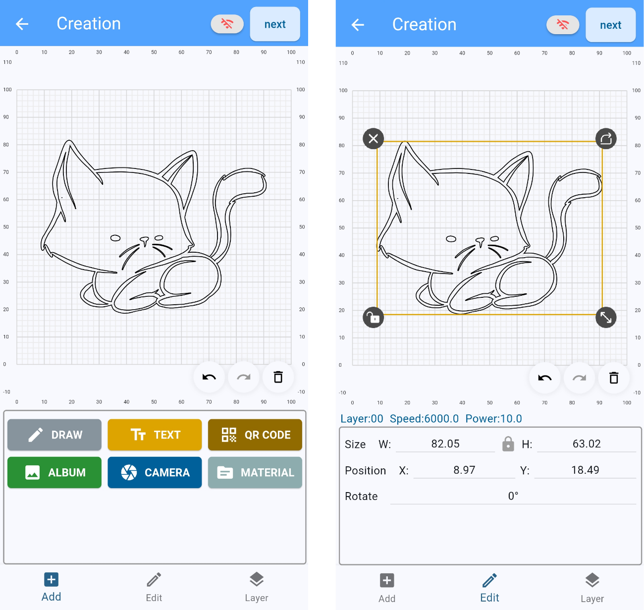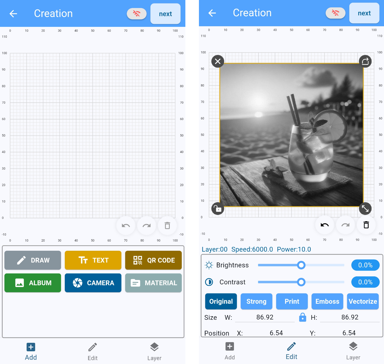 Within Longer Laserburn you just need to select the Creation menu, then just upload a graphic image from your smartphone's gallery.