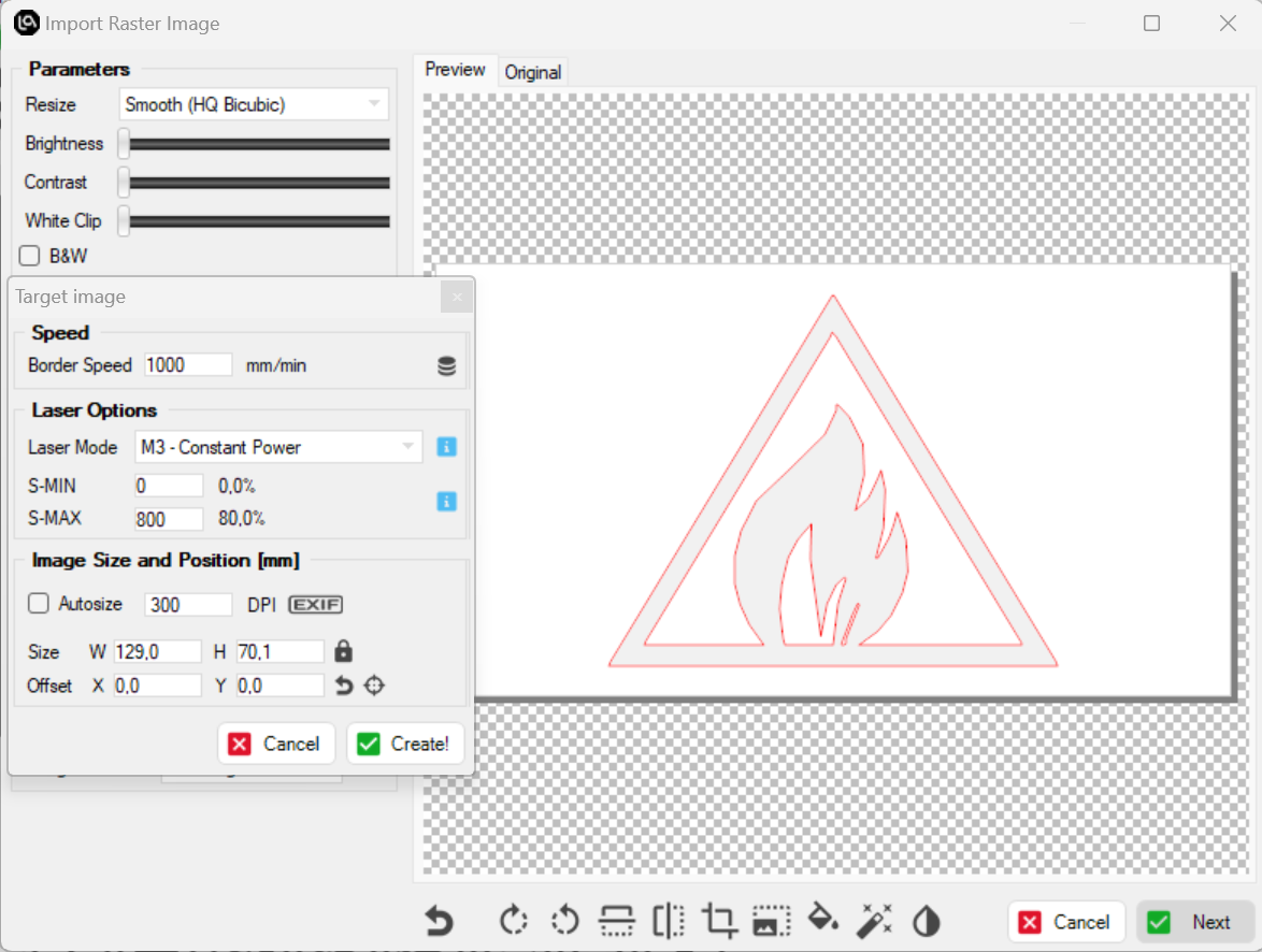 In this way, Longer Ray5 will cut or engrave the selected image, following the vectorial perimeter set above.