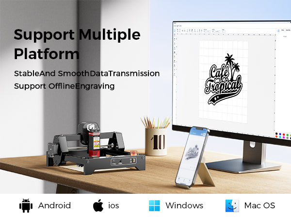 Built-in WiFi allows users to control the machine via app, USB, or local network. Whether you’re a beginner or an expert, LaserGRBL and LightBurn compatibility gives you the flexibility and precision you need. Offline engraving is also supported, making it perfect for on-the-go creators.
