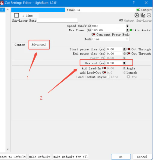 Circumference: Once the object diameter is entered, LightBurn will automatically calculate the circumference. No manual input is needed.