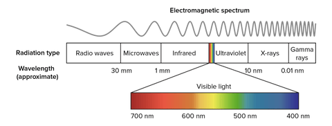 En física, la propagación en el espacio de la energía del campo electromagnético se llama radiación electromagnética. Dependiendo de la longitud de onda, la radiación adquiere una nomenclatura diferente; En particular, una radiación electromagnética con una longitud de onda entre aproximadamente 400 nm y 700 nm se llama radiación visible y es perceptible por el ojo humano y se transforma por el cerebro en sensaciones visuales; Esta radiación es lo que comúnmente se llama luz.