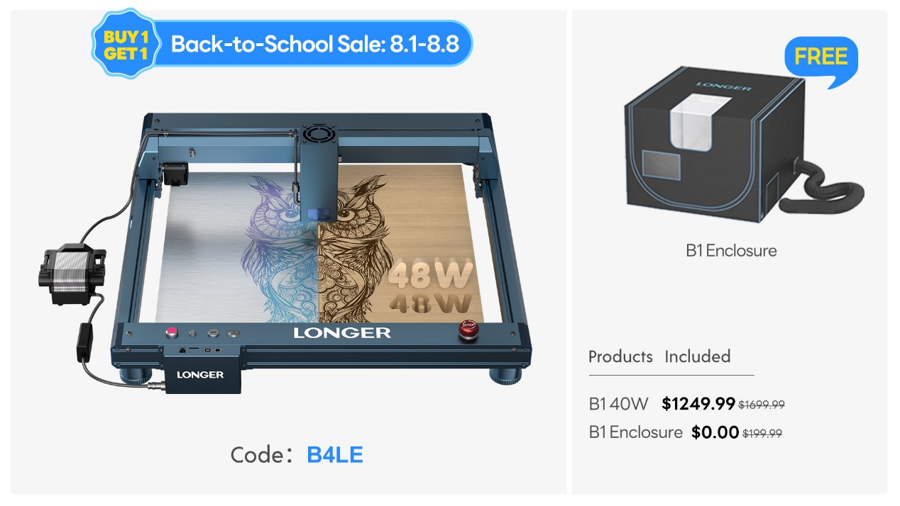 From August 1st to August 8th, don't miss out on LONGER's exclusive Back to School Sale! Whether you're a hobbyist, a professional, or someone looking to explore the world of laser engraving, our range of laser engravers offers exceptional performance and versatility at unbeatable prices.