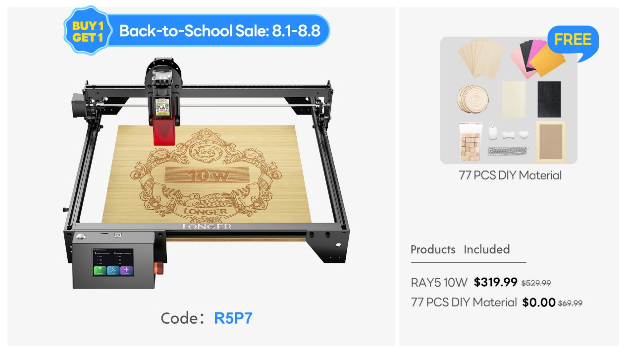 LONGER Ray5 10W: Free 77 Pcs DIY Material Kit