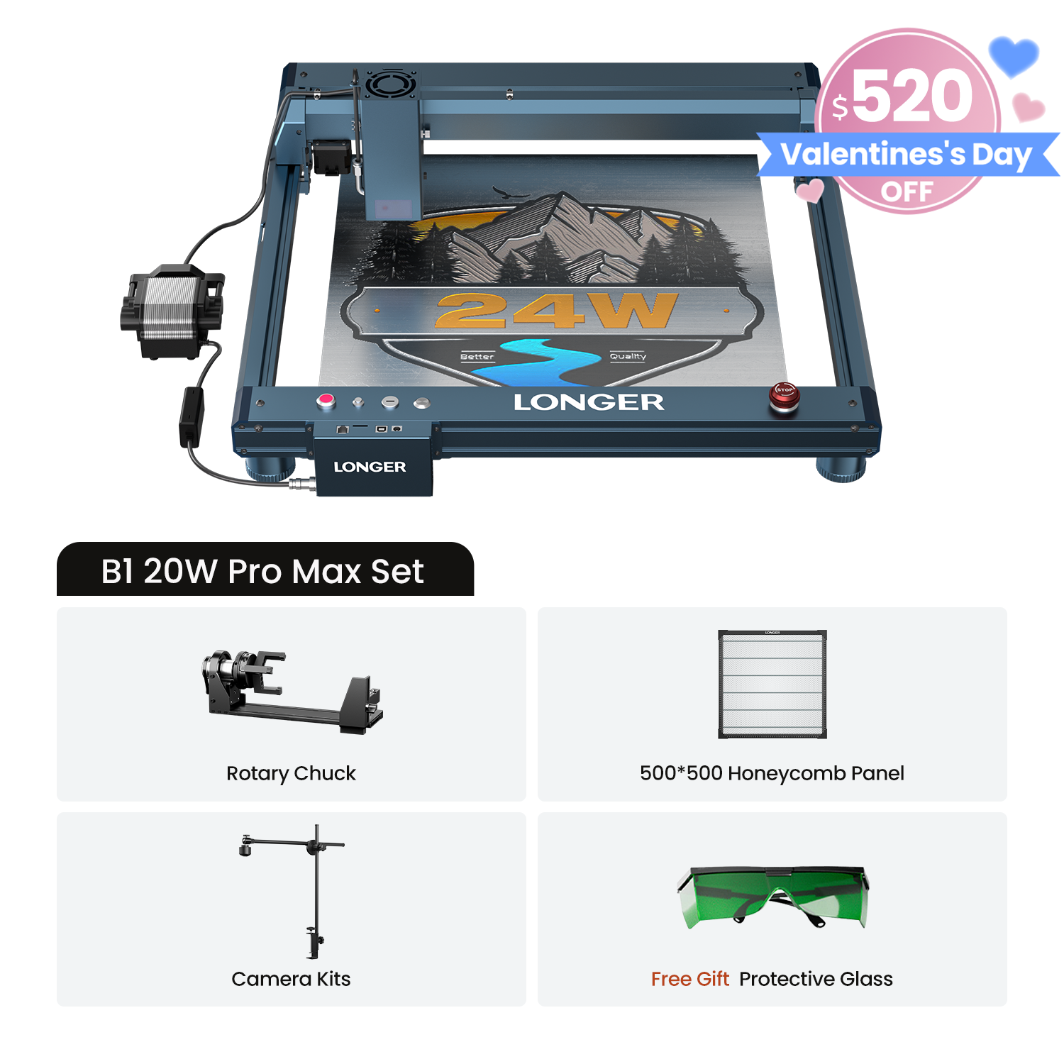 Longer laser B1 20W engraving machine use the lastest spot compression technology and consists of four 6W diode lasers