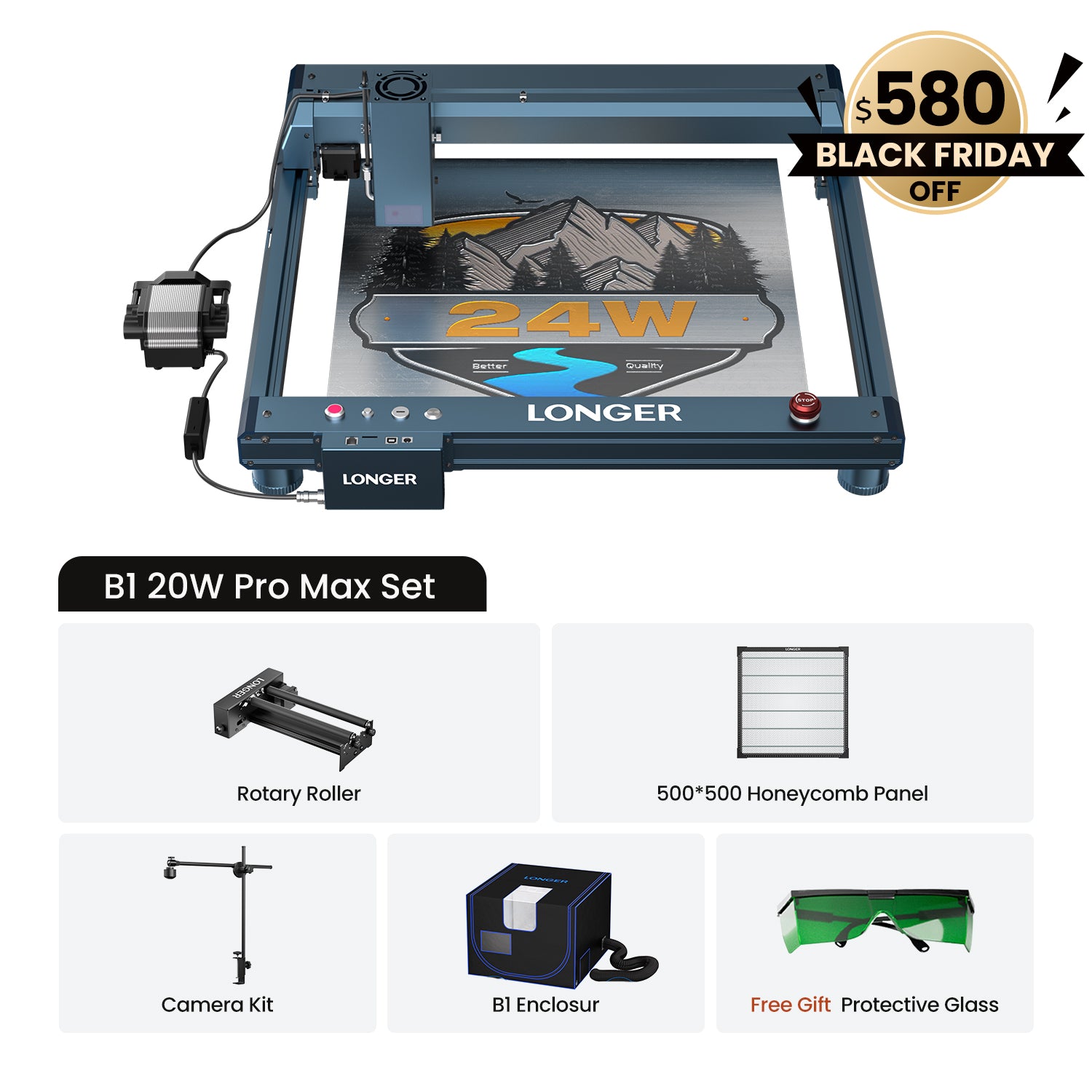The Longer B1 offers greater power, faster speeds, higher precision, and enhanced safety features when compared to the RAY5. While the Ray5 is ideal for beginners, the B1 caters to experienced users seeking advanced engraving and cutting capabilities. Your choice between the two depends on your specific requirements and budget. For further information, please refer to the product detail page