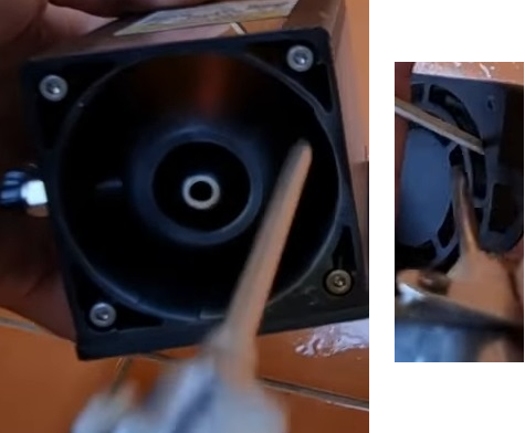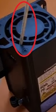 Once the laser module has been disconnected from the rest of the machine, using a compressor or a can of compressed air, it is necessary to gently blow air inside the laser module, from top to bottom through the fan opening, and from bottom to top. During the operation, it is necessary to hold the fan steady, using a small allen wrench, as the compressed air may cause the fan to spin empty, causing damage to the laser module. In addition, it is necessary to use a compressor or a can of low-pressure compressed air, as too high an air pressure could damage the components inside the laser module; Therefore, be very careful!