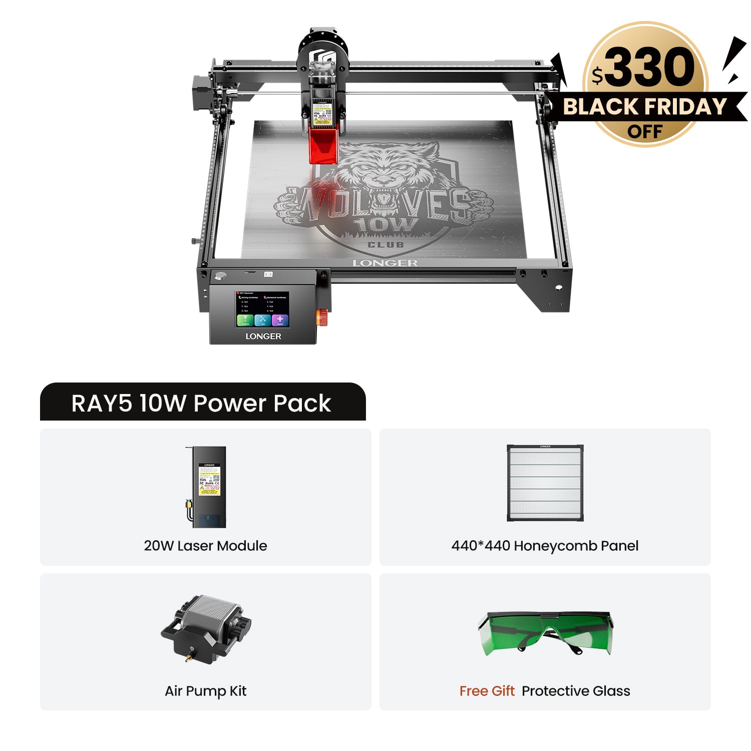 RAY5 10W maximum cutting capacity is 20mm Basswood and 30mm Acrylic