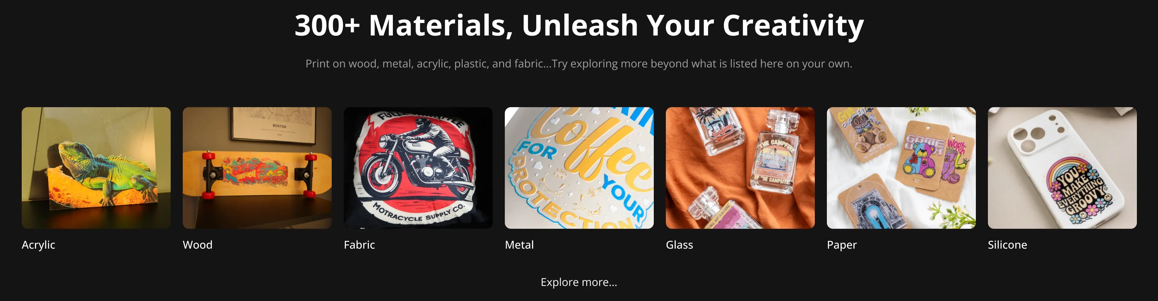Flatbed printing up to 310×420 mm. Just one tap, even with fluorescent effects.