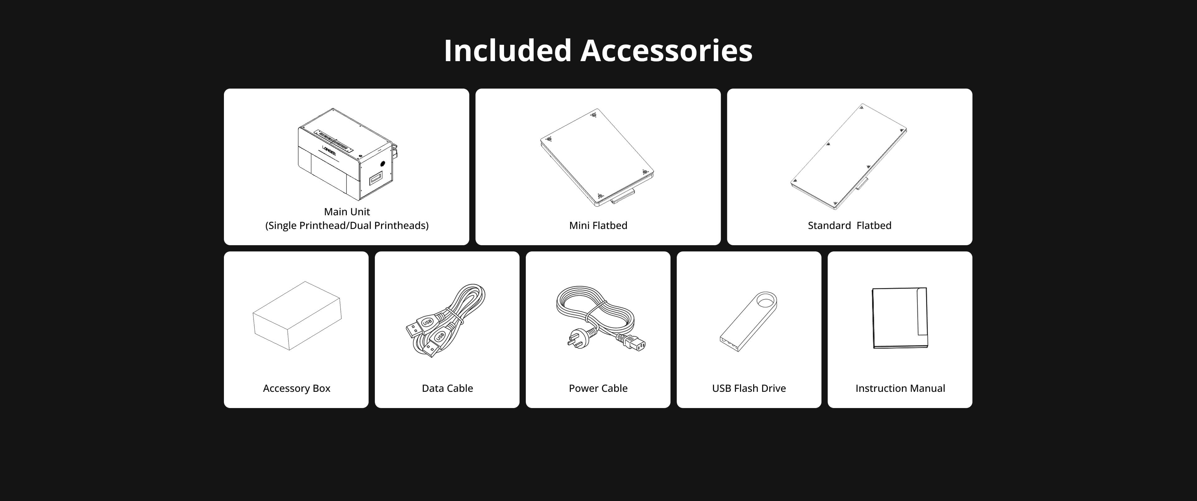 A: Your Longer ePrint UV printer comes fully assembled and ready to use, including: