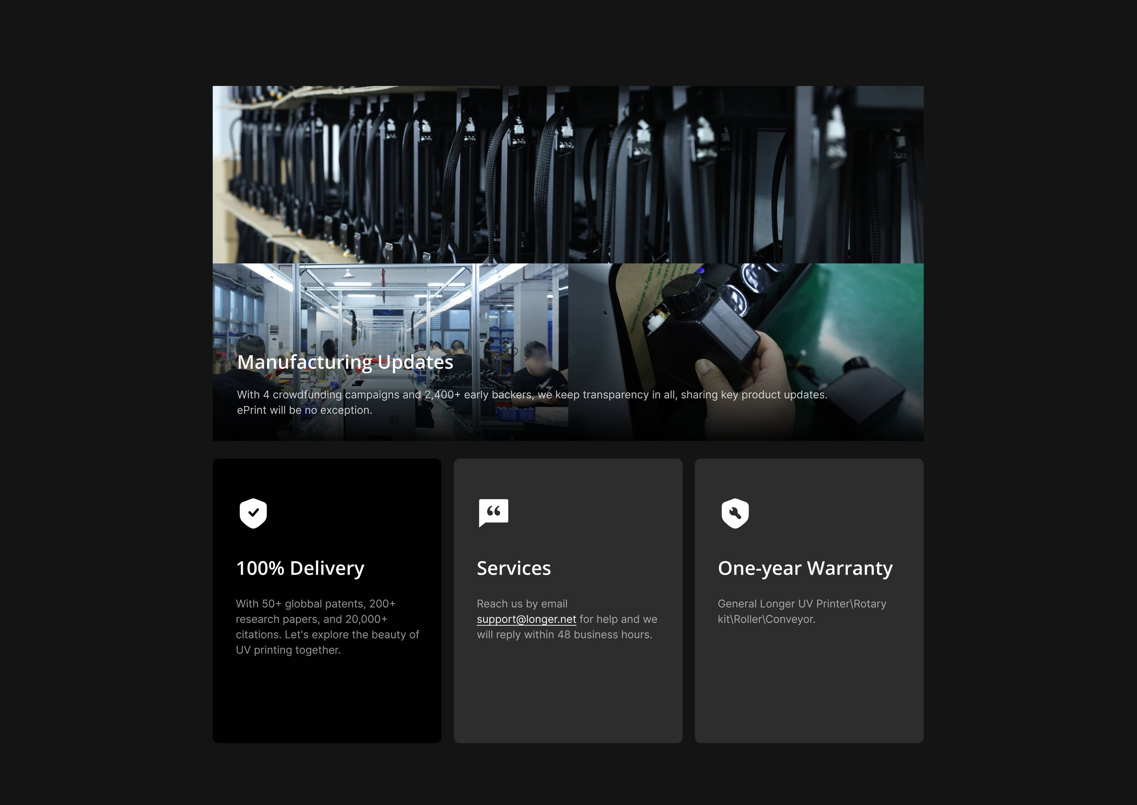 The Longer ePrint UV printer will officially launch on Kickstarter in soon. Shipping is expected to begin in 2026. You’ll receive a tracking number once your package has shipped. The exact delivery time may vary depending on your delivery address and the courier service.