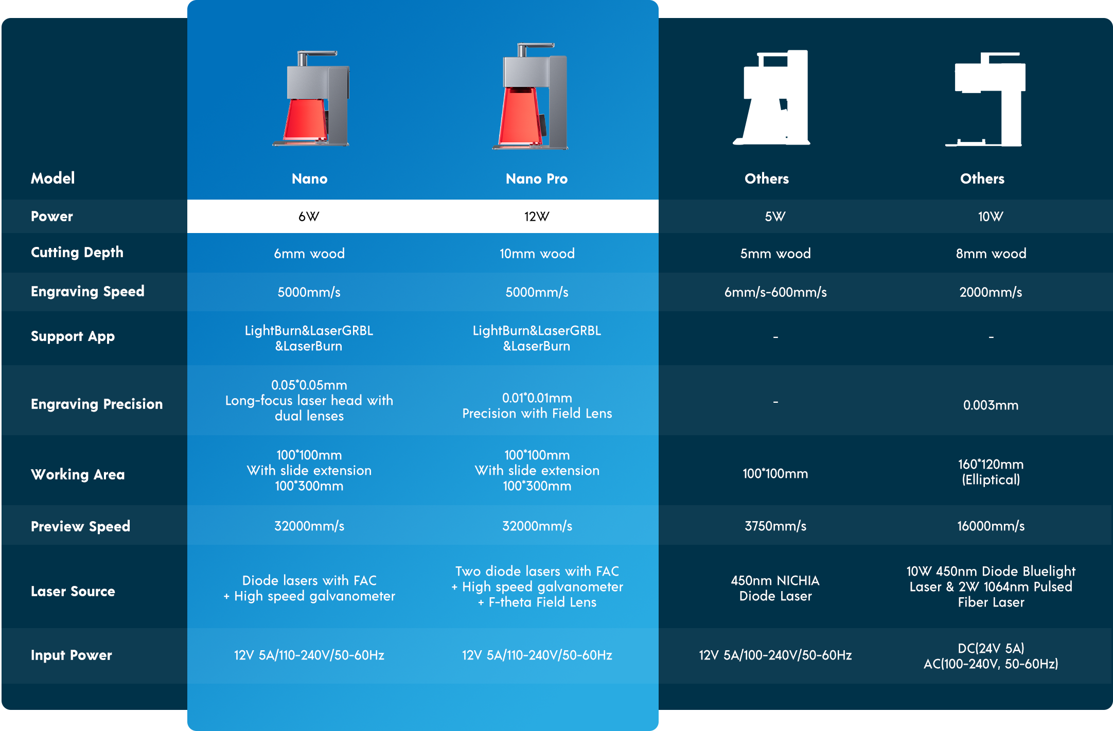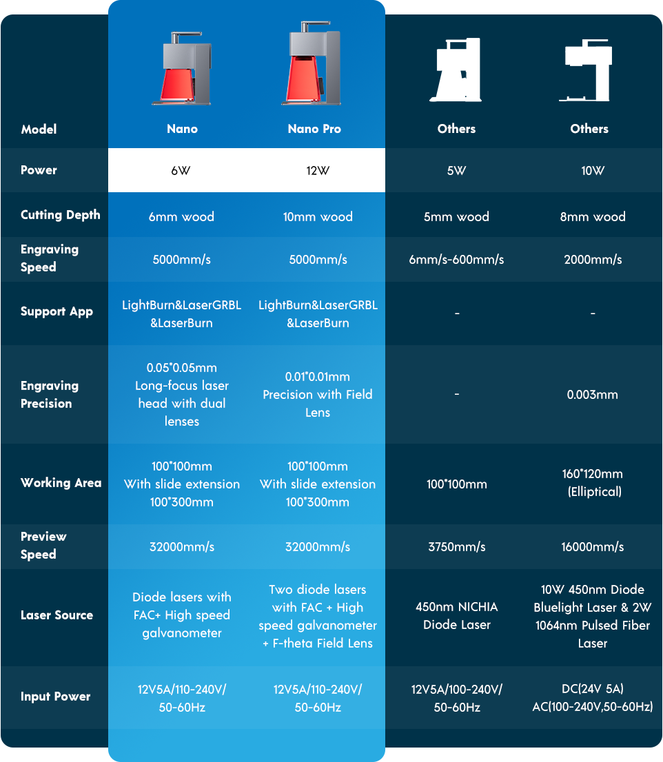 We have tested and compared Nano Pro with other machines and conducted rigorous tests on the aspects that users care about most. From the intuitive data performance, you can see why we strongly recommend you to buy Nano Pro instead of other machines.