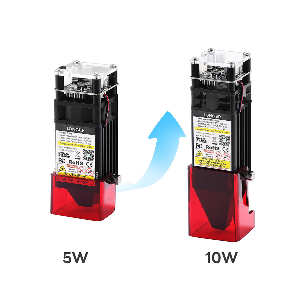 What are the differences between RAY5 5W, 10W and 20W?