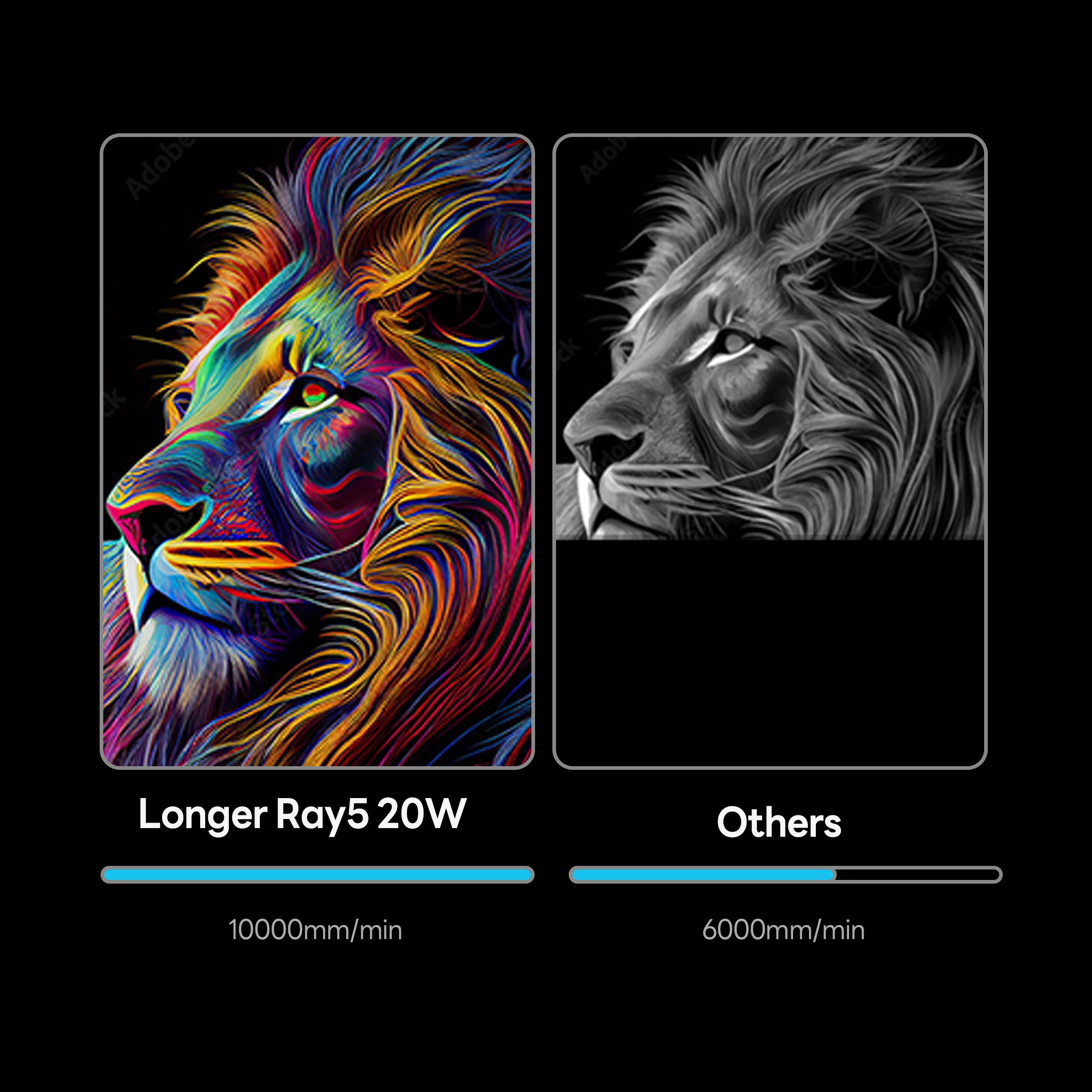 The RAY5 20W laser engraver let you breeze through even the most intricate engraving. Experience new level of efficiency with the exceptional power of the RAY5 20W