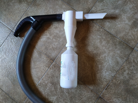 The model consists of the main body of the cyclonic separator and two input and output adapters, which serve as a connection between the cyclone and the vacuum cleaner pipes. For best results it is recommended to use PETG, however if you do not have some experience with this material then you can also use PLA.
