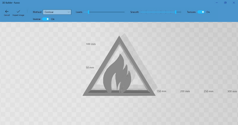Once the image has been imported into 3D Builder, you can change some settings such as Levels, Smooth, and so on; using these settings, edit the file according to your preferences. Once the editing is complete, select Import Image to get the image converted to 3D file.