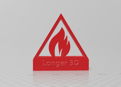 At this point you can keep the 3D file as it is and proceed directly to export the file, or alternatively you can edit it as you want; for example, the test file was modified by adding a base (with a downward extrusion) and writing on the base the "Longer 3D" logo, for last colored in red, as shown in the figure.