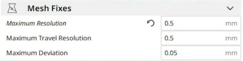 On the other hand, the Ultimaker Care slicer is equipped with a special, hidden feature that not everyone knows about, which is very useful for reducing the number of meshes of a 3D object. This option is called "Mesh Fixes" and is intended to reduce the number of meshes of an object by varying the maximum length of each segment. In this way, by increasing the maximum distance of each segment, at the same perimeter inevitably the number of segments must be smaller, and therefore the computational cost of the mainboard is also reduced. Therefore, by processing the gcode more easily, the 3D printer will be able to process a greater number of displacements without suffering from pauses, and therefore reducing the blobs.