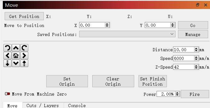Next, go back to the LightBurn software, click “Fire” again, and move the rotary clamp to ensure the blue laser is hitting the top of your material.