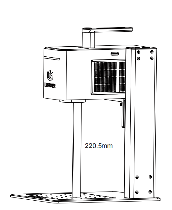 1)Use a ruler or the wooden stick included in the package (220.5mm). Place one end of the stick vertically on the surface of the engraving material. Adjust the height of the laser head so that the bottom of the field lens is exactly 220.5mm above the surface, or just touches the wooden stick.