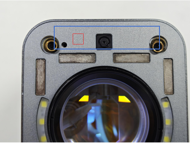 If the two red dots are not overlapping, you’ll need to manually adjust the red dot focusing module. The red dot module is outlined in blue in the image. The left side is the movable red laser.