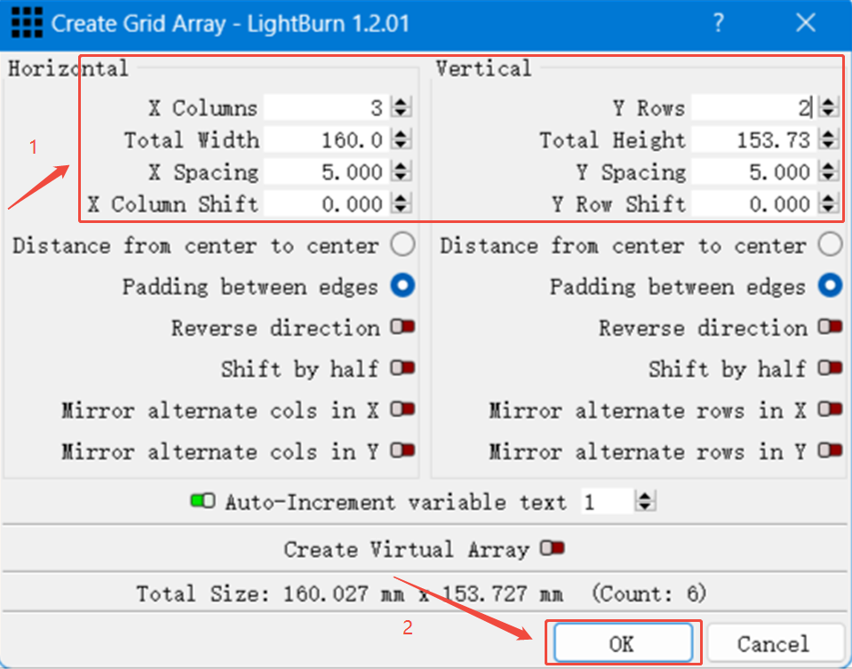 When using LightBurn for laser engraving, manually duplicating each object can be extremely time-consuming—especially when working with a large number of identical designs. Fortunately, LightBurn offers a powerful feature called “Create an Array of the Selected Objects” that allows you to quickly generate multiple copies of a design with just a few clicks.