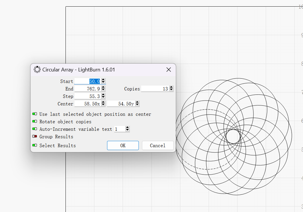 The Circular Array tool in LightBurn is a powerful and intuitive way to design symmetrical, radial patterns. By mastering its parameters, you can streamline your creative process and produce complex layouts with precision and ease. Whether you're working on signage, art, or functional objects, this feature opens up a wide range of design possibilities.