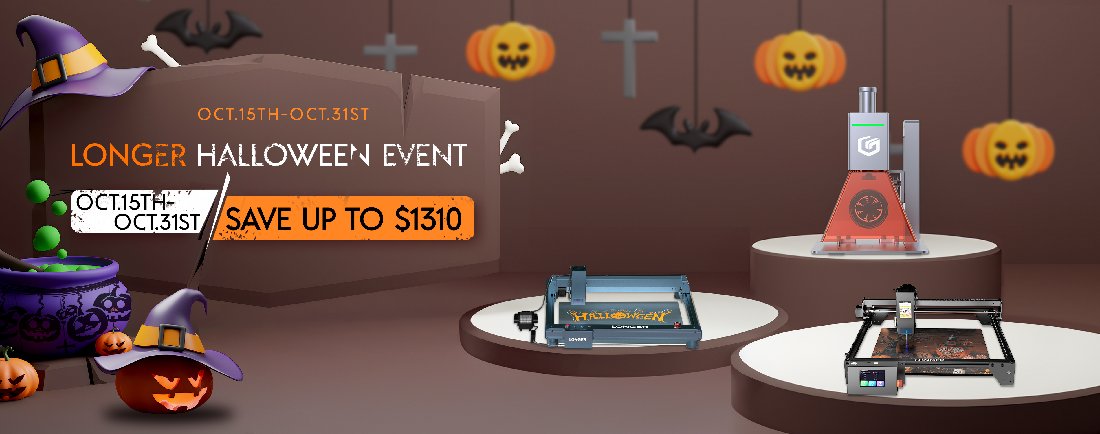 This LONGER Halloween Sale, start 15th to 31th October, LONGER is conjuring up some hair-raising deals that are sure to send shivers of excitement down your spine! Whether you're a DIY enthusiast or a professional looking to boost your laser engraving game, now is the perfect time to carve out big savings and unleash your creativity with these fang-tastic offers!