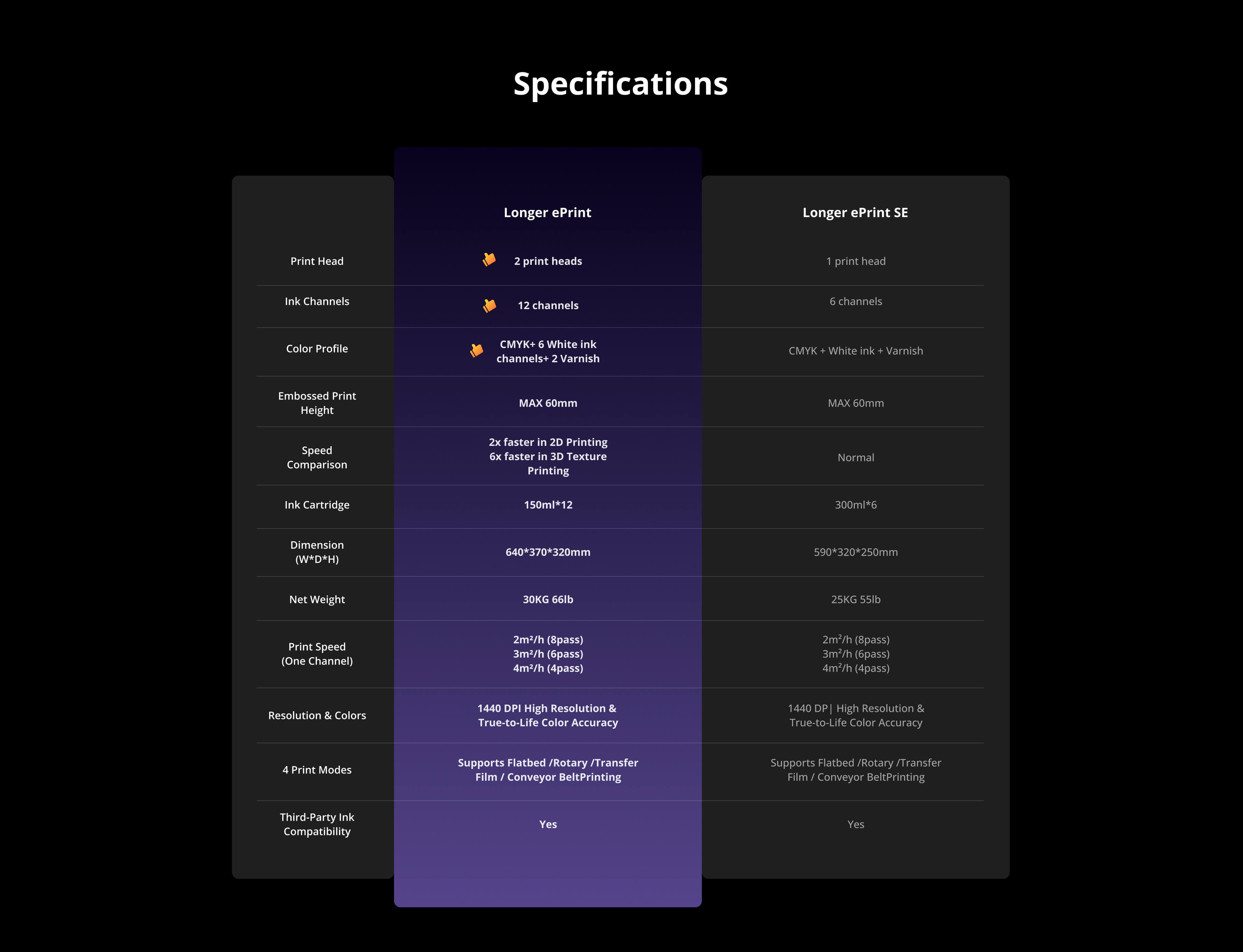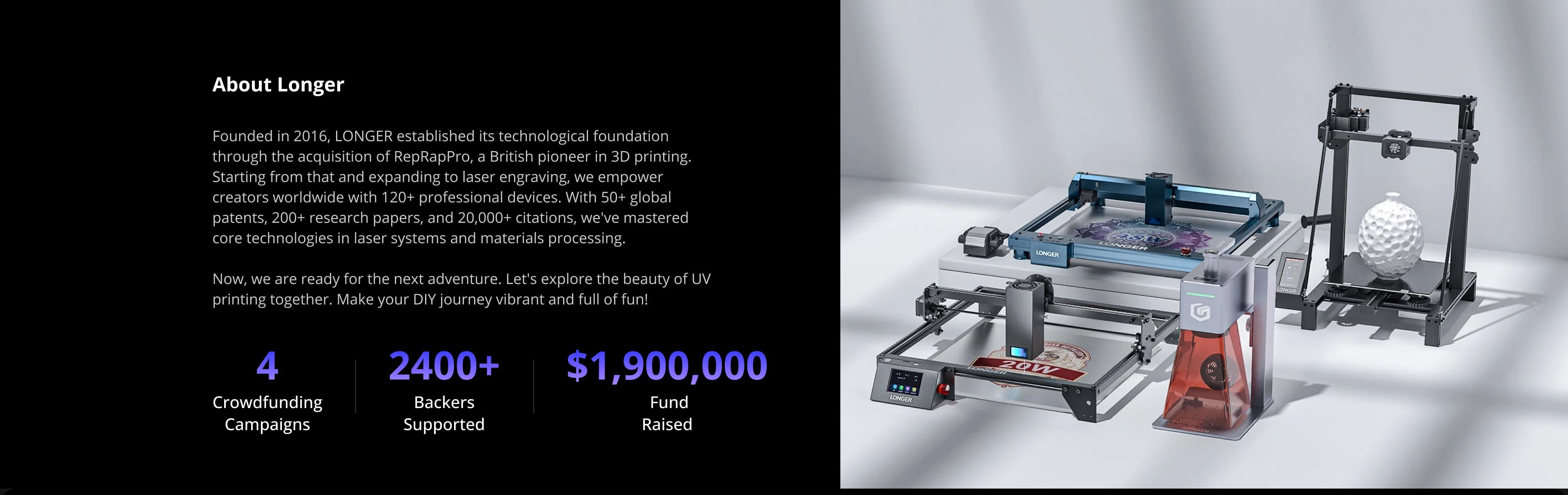 To show our appreciation for your early trust and support, we're offering an exclusive VIP Offer on the Longer UV Printer for our first-wave supporters. By placing a $50 deposit, you can lock in the VIP price of the ePrinter SE ($1,299) or the ePrint ($1,699), saving you $900 or $1,300 off the retail price! The deposit is also 100% refundable if you change your mind before the official launch.