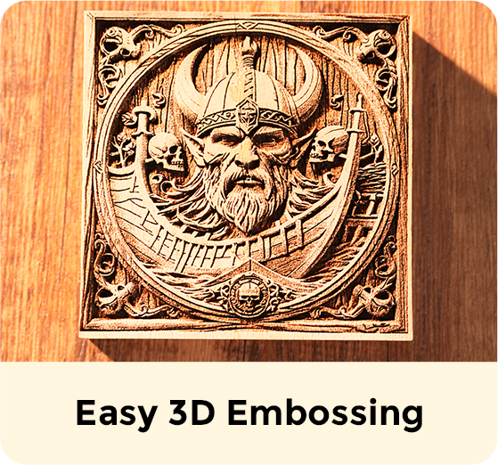 Nano Duo’s algorithm can automatically adjusts lifting laser head engraving depth based on color, achieving incredibly detailed and refined 3D embossing effects with precision and ease.