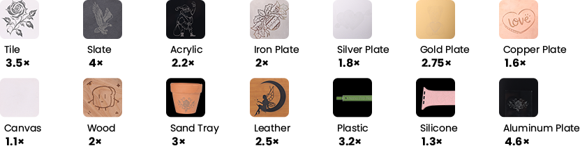 Intrinsic working area 160*140mm, maximum working area 300*300mm with dual-axis extension. Nano Duo provide you a larger creative area to enjoy creation.